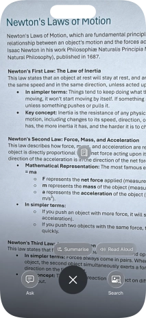 To use visual intelligence on a text, take a picture of the text, press the required setting and follow the instructions on the screen to use the function.