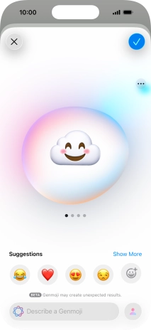 To use the selected Genmoji in your message, press the confirm icon.