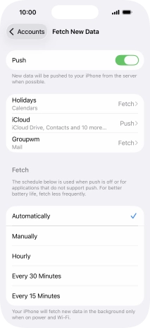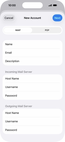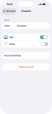 Press the required email account and follow the instructions on the screen to select settings for the specific account.
