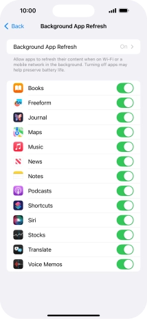 To turn off background refresh of apps, press Off.
