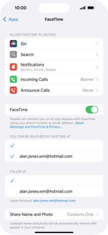 Press the required setting below "YOU CAN BE REACHED BY FACETIME AT".