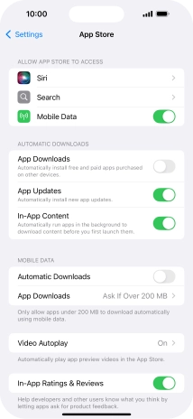 Press the indicator next to "App Downloads" to turn the function on or off.