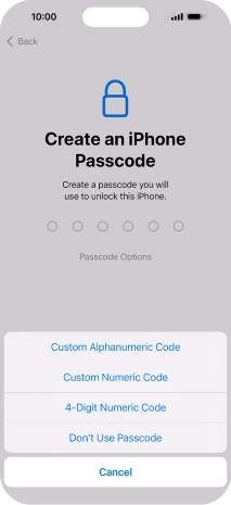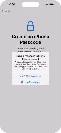 Follow the instructions on the screen to turn on use of phone lock code or press Don't Use Passcode.
