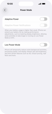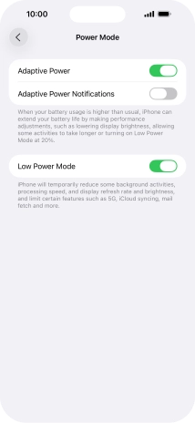 Press the indicator next to "Low Power Mode" to turn on the function.