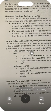 To use visual intelligence on a text, take a picture of the text, press the required setting and follow the instructions on the screen to use the function.
