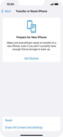 Press Erase All Content and Settings.