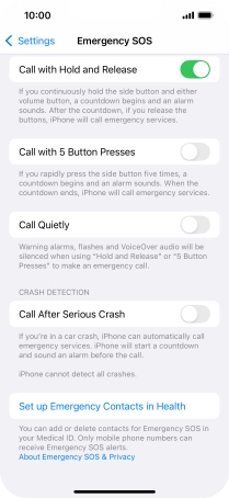 If you've added emergency contacts, they will automatically be notified if you've been in a severe car crash. If you add your emergency info, it will be displayed on your phone's lock screen.