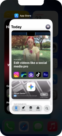 Slide your finger slowly upwards starting from the bottom of the screen until the list of running applications is displayed.