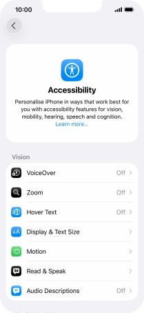 It is possible to select more accessibility settings, you can, e.g., turn the accessibility shortcut on or off, set up Guided Access and set up accessibility functions for certain apps.
