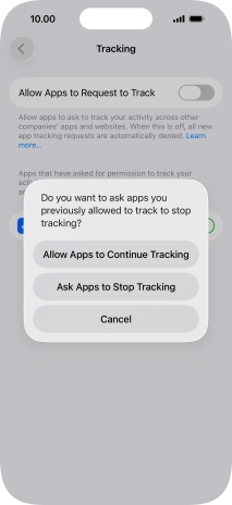 Press the indicators next to the required apps to turn tracking request for each app on or off.