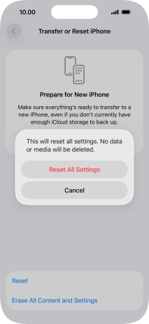 Press Reset All Settings. Wait a moment while the factory default settings are restored. Follow the instructions on the screen to set up your phone and prepare it for use.