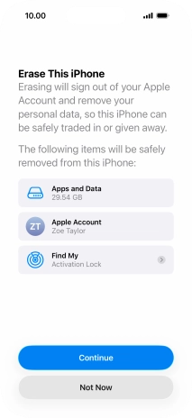 Key in the password for your Apple Account and press Turn Off. Wait a moment while the factory default settings are restored. Follow the instructions on the screen to set up your phone and prepare it for use.