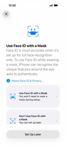 Press Get Started and follow the instructions on the screen to set up Face ID.