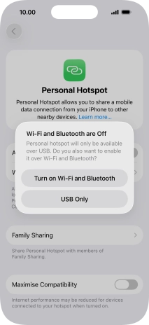 If Wi-Fi is turned on, press Wi-Fi and USB Only.