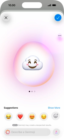 To use the selected Genmoji in your message, press the confirm icon.