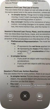 To use visual intelligence on a text, take a picture of the text, press the required setting and follow the instructions on the screen to use the function.
