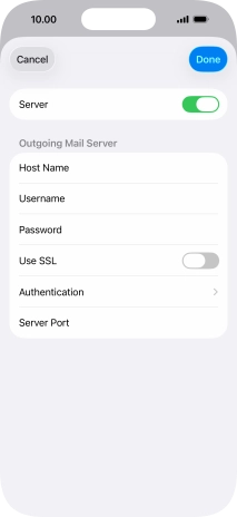 Press Password and key in the password for your email account. Please note that if you're using Vodafone's outgoing server, leave the password field empty.