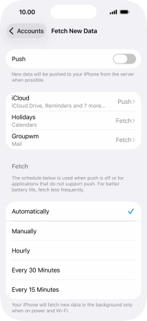 Press the required email account and follow the instructions on the screen to select settings for the specific account.