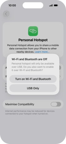 If Wi-Fi is turned on, press Wi-Fi and USB Only.