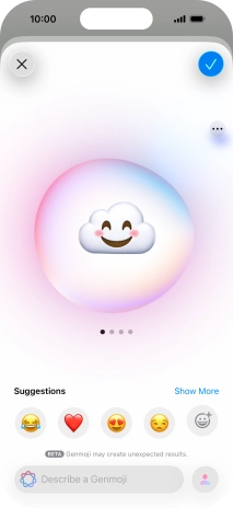 To use the selected Genmoji in your message, press the confirm icon.