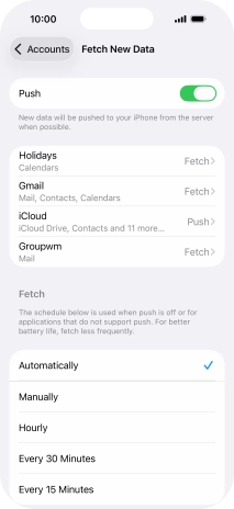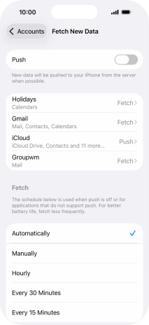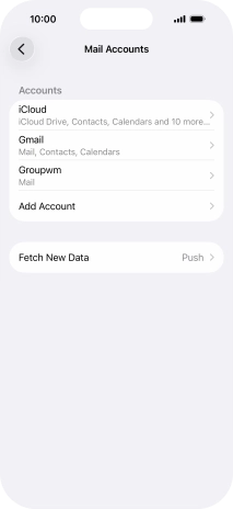 Press the required email account and follow the instructions on the screen to select settings for the specific account.