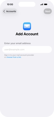 If this screen is displayed, you email account has been recognised and set up automatically. Follow the instructions on the screen to key in more information and finish setting up your email account.