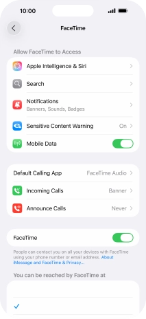 Press the indicator next to "FaceTime" to turn the function on or off.