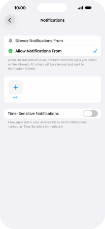 Press Apps and follow the instructions on the screen to select which apps you would like to receive notifications from when Do Not Disturb is turned on.
