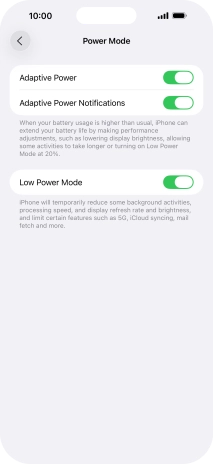 Press the indicator next to "Low Power Mode" to turn on the function.