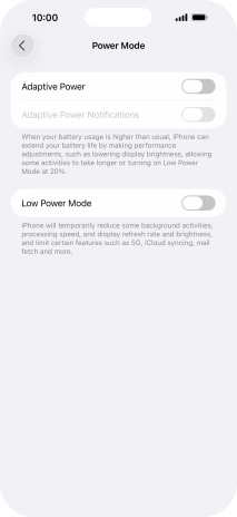 Some functions on your phone use a lot of power and therefore significantly reduce the battery life. You can reduce the power consumption by turning on low power mode.