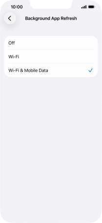 To turn on background refresh of apps using mobile network, press Wi-Fi & Mobile Data.