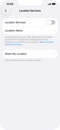 Press the indicator next to "Location Services" to turn the function on or off.
