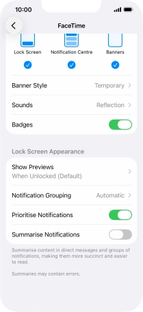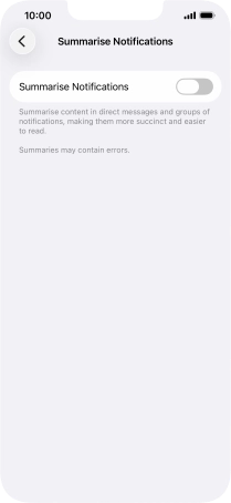 Press the indicator next to "Summarise Notifications" to turn the function on or off.