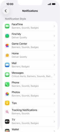 Press the indicator next to "Allow Notifications" to turn notifications for the selected application on or off.