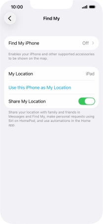 Select settings for Find My iPhone on your Apple iPhone 17e iOS 26