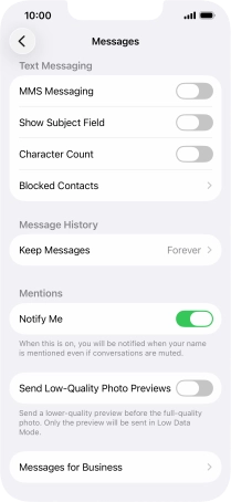 Press the indicator next to "MMS Messaging" to turn on the function.