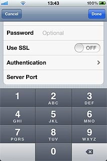 Press Host Name below Outgoing Mail Server and key in the name or IP address of your email provider's outgoing server.