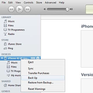Before you can back up the phone memory using iTunes, you need to install the program iTunes on your computer.