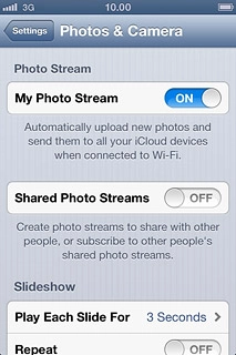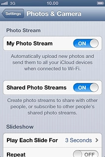 Press the indicator next to Shared Photo Streams to turn on the function.