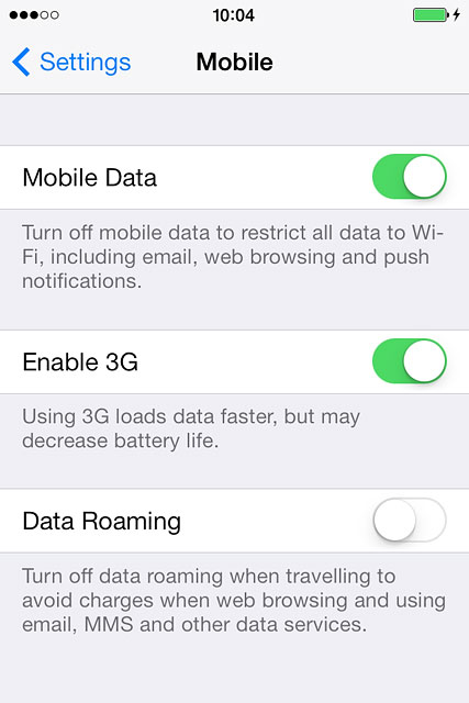 Press the indicator next to "Enable 3G" to turn the function on or off.