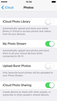 Press the indicator next to "My Photo Stream" to turn the function on or off.