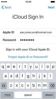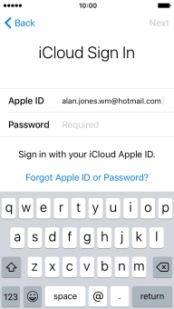 Press the field next to "Apple ID" and key in the username for your Apple ID.
