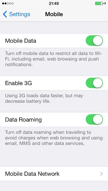 Press the indicator next to "Enable 3G" to turn the function on or off.