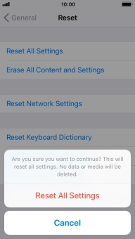 Press Reset All Settings. Wait a moment while the factory default settings are restored. Follow the instructions on the screen to set up your phone and prepare it for use.