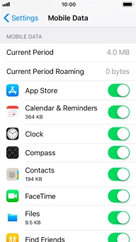 Press the indicator next to "Mobile Data" to turn the function on or off.