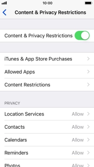 Press the indicator next to "Content & Privacy Restrictions" and follow the instructions on the screen to select settings for content and privacy restrictions.