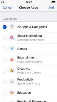 Press the add icon next to the required app to add it to the list of allowed apps during Downtime.