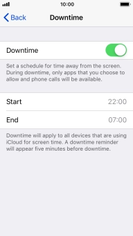 Press the indicator next to "Downtime" and follow the instructions on the screen to select Downtime period.