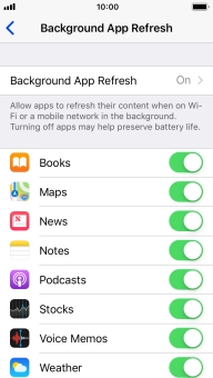 Select settings for background refresh of apps on your Apple iPhone 5s iOS 12.0