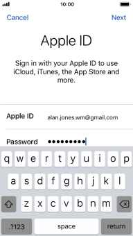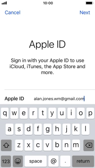 Press the field next to "Apple ID" and key in the username for your Apple ID.